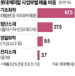 롯데케미칼은 기초화학과 첨단소재, 정밀화학(롯데정밀화학), 전지소재(롯데에너지머티리얼즈) 등 4개 사업본부를 두고 있다.