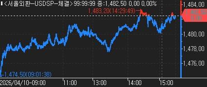 장중 고점은 1,483.20원, 저점은 1,474.50원으로 장중 변동 폭은 8.70원이다.