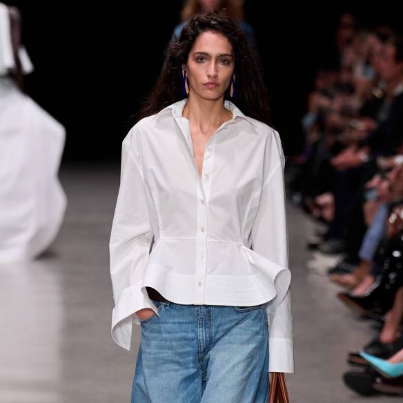 클래식은 영원하다는 말은 이 룩을 두고 하는 말이라 해도 과언이 아니죠. 화이트 셔츠와 청바지 조합은 군더더기 없는 담백함으로 매 시즌 우리의 마음을 설레게 합니다. 특히 이번 봄에는 스텔라 매카트니의 컬렉션 피스처럼 (디테일이 추가돼 평소와 조금은 다른) 화이트 셔츠와 여유로운 실루엣의 와이드 팬츠 조합으로 신선한 룩을 완성해보세요.