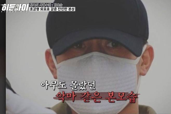 프로파일러 권일용이 처음으로 공개하는 강호순과의 일대일 면담 비화는 4월 13일 월요일 저녁 8시 30분 MBC에브리원 '히든아이'에서 확인할 수 있다.