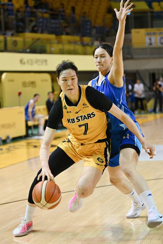 KB스타즈도 박지수를 벤치에 두고 허예은, 이채은, 강이슬, 사카이 사라, 송윤하가 먼저 나왔다.