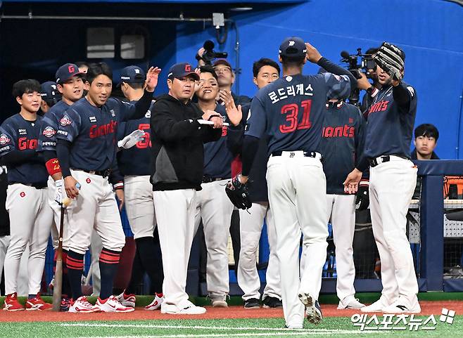 알칸타라도 1회초 실점 후 안정을 찾았다. 2회초 윤동희, 한태양을 연속 삼진으로 처리하면서 날카로운 구위를 보여줬다. 2사 후 전민재를 3루수 실책으로 출루시키기는 했지만, 손성빈을 유격수 땅볼로 막고 고비를 넘겼다.