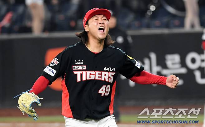 10일 대전 한화생명볼파크에서 열린 한화와 KIA의 경기. KIA 김범수가 경기를 마무리 지은 뒤 환호하고 있다. 대전=박재만 기자 pjm@sportschosun.com/2026.04.10/