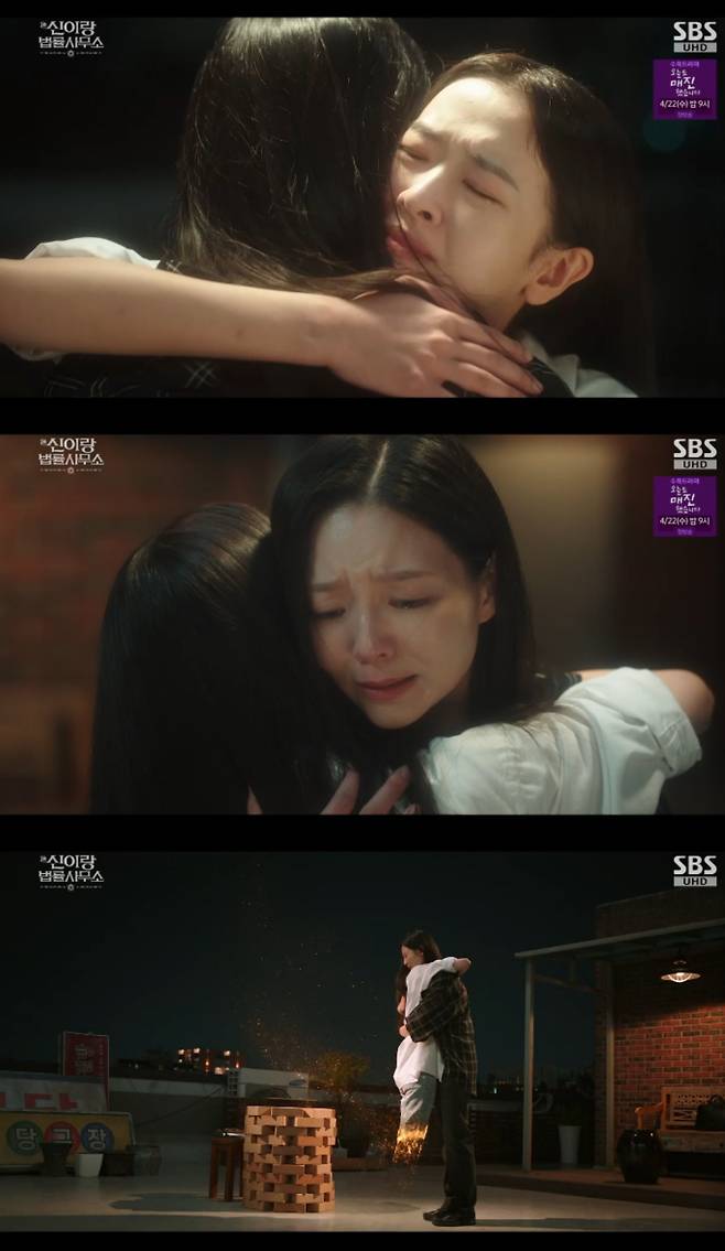 지난 10일 방송된 SBS 금토드라마 '신이랑 법률사무소' 9회에서는 신이랑(유연석 분) 덕분에 죽은 언니 한소현(황보름별)과 행복한 시간을 보내고 이별을 한 한나현(이솜)의 모습이 그려졌다.