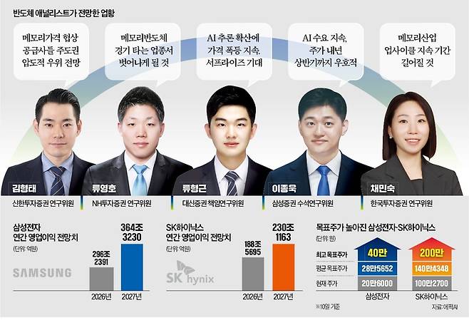 국내 반도체 애널리스트들은 삼성전자와 SK하이닉스 주가가 당분간 우상향 곡선을 그릴 것으로 전망했다. 인공지능(AI) 관련 서버 수요가 폭발적으로 늘어나며 메모리 슈퍼사이클이 계속되는 데다 빅테크와 장기공급계약(LTA)을 연이어 맺어 2~3년간 역대급 실적을 낼 것이란 이유에서다.
