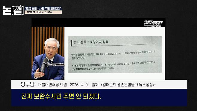 양부남 더불어민주당 의원 “이번에 국정조사를 쭉 보면서 (생각)했던 게 보완수사권을 주면 안 되겠다는 확신이 와버렸던 거예요…진짜 보완수사권 주면 안 되겠다. 무슨 짓을 할지 알 수 없다, 그런 두려움이 왔다니까요.”