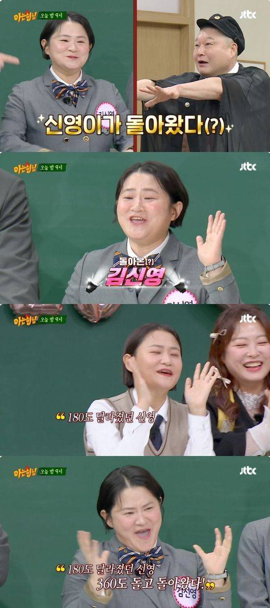 김신영은 실제 '아형' 게스트 출연마다 호평을 받아왔다. 지난 2016년 첫 출연 이후 5번에 걸쳐 게스트로 '아형'을 찾았던 김신영은 전학생 게스트 사이에서는 물론 기존 '아형' MC들 사이에서도 전혀 기죽지 않고 오히려 기선을 제압하는 모습으로 큰웃음을 선사해왔다. '아형' 통으로 통하는 터줏대감 강호동도 김신영 앞에서는 "강호동!" 호통 소리에 웃음을 지을 정도였다.