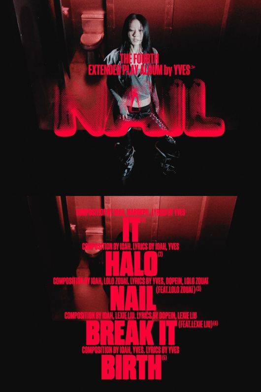'NAIL'의 트랙리스트도 베일을 벗었다. 이브의 새 앨범에는 타이틀곡 'NAIL (feat.Lolo Zouaï)'을 포함해 'It(잇)', 'HALO(헤일로)', 'Break it (feat.Lexie Liu)(브레이크 잇)', 'birth(벌스)' 등 총 5곡이 담긴다.