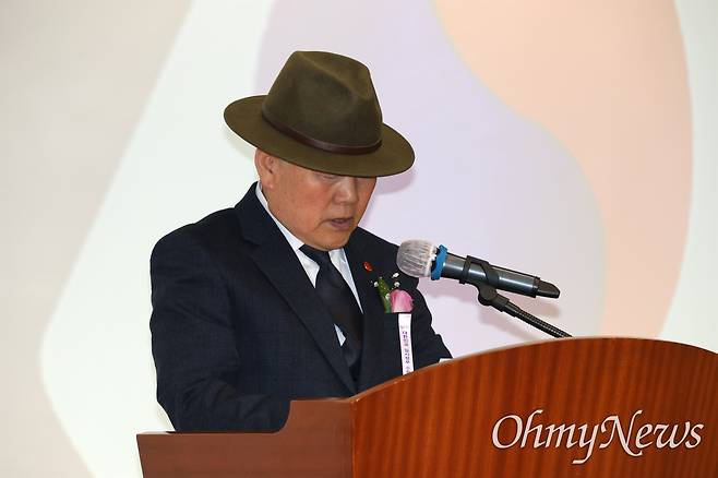 | ▲ 11일 오전 대구시청 산격청사에서 열린 제107주년 대한민국 임시정부 수립 기념식에서 우대현 광복회 대구지부장이 약사보고를 하고 있다. |