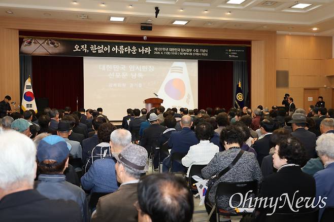 대한민국 임시정부 수립 제107주년 기념식이 '오직, 한없이 아름다운 나라'를 주제로 11일 오전 대구시청 산격청사 대강당에서 열렸다.