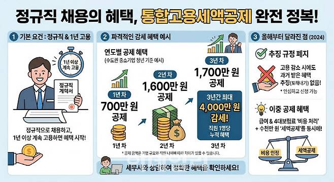 특히 올해부터는 통합고용세액공제가 훨씬 유리하게 바뀌었다. 조건은 단 하나, “동일한 직원을 1년 이상 계속 고용하라”는 것이다.