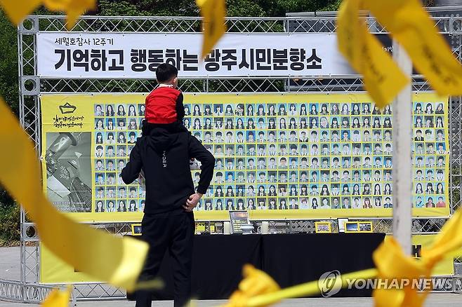 (광주=연합뉴스) 김혜인 기자 = 세월호 참사 12주기를 닷새 앞둔 11일 광주 동구 5·18민주광장에서 한 가족이 시민분향소를 둘러보고 있다. 2026.4.11