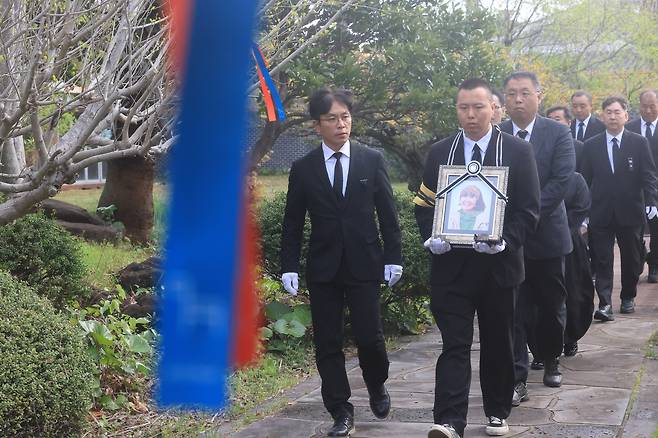 | ▲ (서귀포=연합뉴스) 박지호 기자 = 10일 오전 제주 서귀포시 서복공원에서 서명숙 제주올레 이사장 영결식이 열리고 있다. 2026.4.10 |