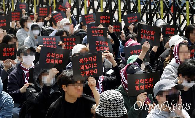 반면 동덕여대 학생들은 경찰이 지난 2월 조원영 동덕학원 이사장에게 제기됐던 교비 횡령 의혹을 불송치 결정한 데 대해 문제를 제기했다. 시위를 주최한 '민주없는 민주동덕' 관계자는 "피의자의 사회적 지위와 권력에 따라 수사가 편파적으로 이뤄지고 있다는 점을 강하게 규탄한다"고 밝혔다.