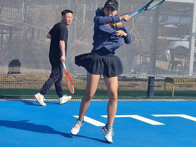 스텝으로 볼과의 거리를 맞추고 나니 급하지 않고 여유롭게 원하는 곳으로 보낼 수 있었고 손목의 고정과 스텝 등 꼭 알아야 하는 테니스의 기본을 배울 수 있었다고 한다.