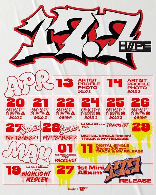 이번에 공개된 스케줄러 이미지는 앨범 타이틀 ‘17.7’을 중심으로 강렬한 인상을 남겼다. 레드, 블랙, 화이트 컬러가 감각적으로 어우러진 타이포그래피는 단번에 시선을 끌며, 스트릿 감성의 자유분방한 무드를 직관적으로 전달했다. 텍스트 디자인만으로도 하입프린세스가 지닌 당당한 에너지와 팀 정체성을 암시하며 데뷔 콘셉트에 대한 궁금증을 자극했다.