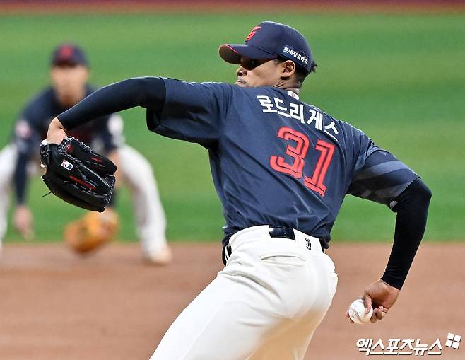 로드리게스는 최고구속 154km/h를 찍은 패스트볼과 컷 패스트볼, 체인지업, 슬러브 등 다양한 구종을 섞어 던지면서 키움 타선을 잠재웠다. 지난 3일 SSG 랜더스전에서 4이닝 9피안타 2피홈런 5볼넷 1사구 8실점으로 패전투수가 됐던 아픔을 빠르게 씻어냈다.