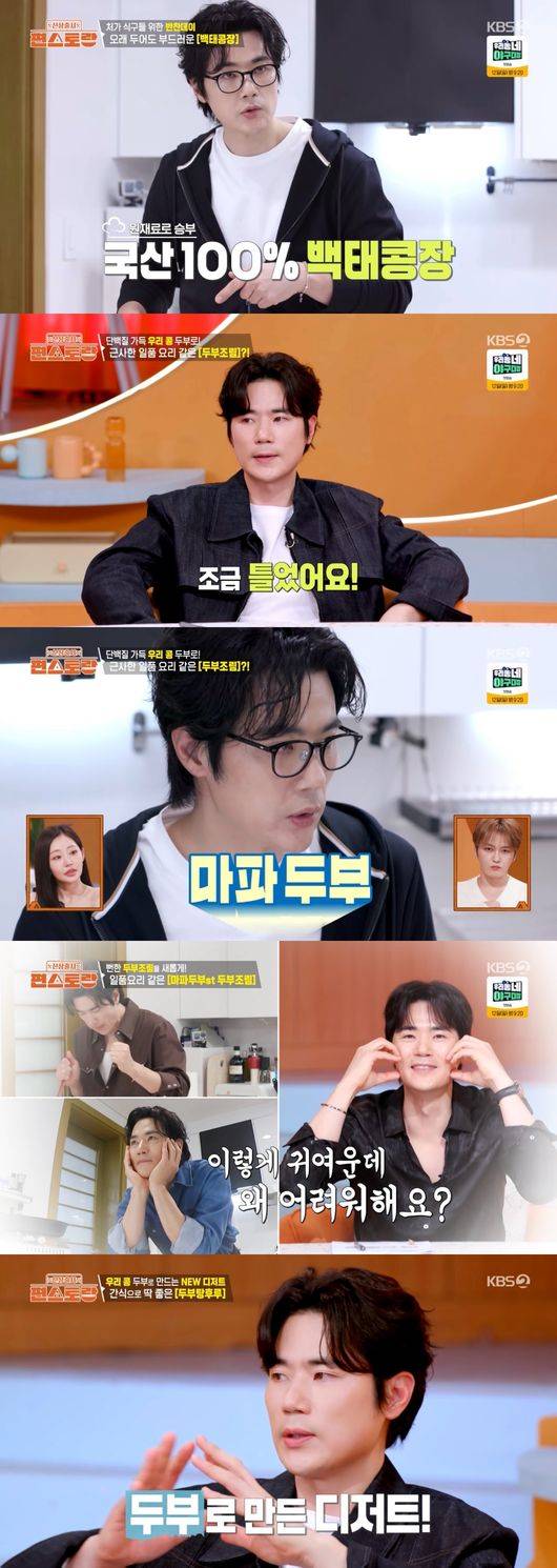 두부 요리 역시 눈길을 끌었다. 김강우는 두부를 전자레인지에 돌려 수분을 제거한 뒤, 된장과 두반장을 활용해 마파두부의 풍미를 더한 두부조림을 선보였다. 여기에 그치지 않고 두부를 튀겨 물엿과 설탕 베이스의 소스를 입힌 ‘두부 탕후루’까지 완성, 겉바속촉 식감의 디저트형 요리로 또 한 번 놀라움을 안겼다.