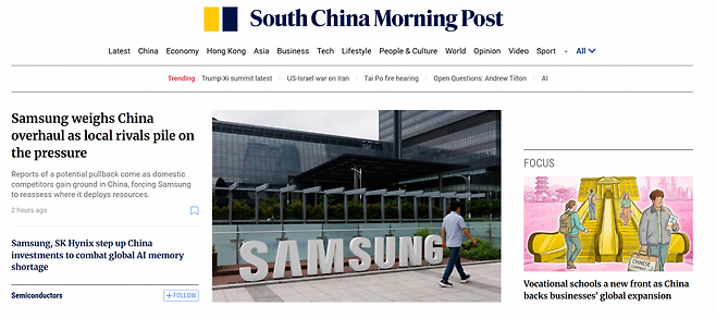 11일 홍콩 사우스차이나모닝포스트(SCMP)는 중국 경제 매체인 제일재경을 인용해 삼성전자가 중국 본토 사업 일부를 축소하고 반도체 분야에 더욱 집중할 가능성이 있다고 보도했다.