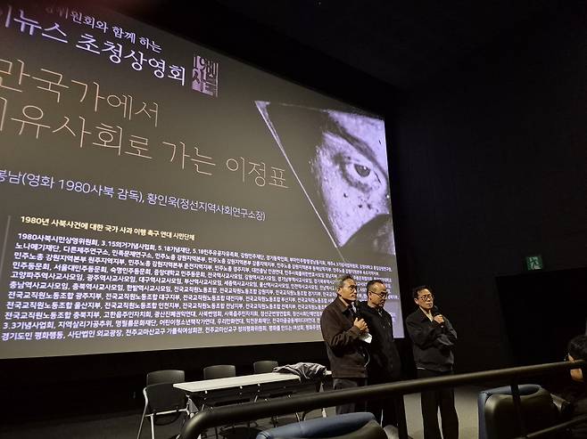 상영 후 이어진 GV(관객과의 대화)는 오연호 오마이뉴스 대표, 박봉남 영화감독, 황인욱 정선지역사회연구소장이 참석했다.