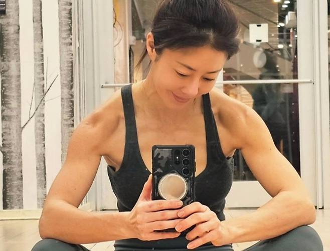 공개된 사진엔 운동복 차림으로 거울 셀카를 촬영 중인 이지현의 모습이 담겼다.