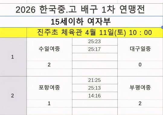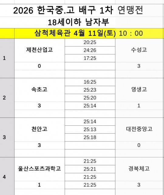 수성고가 제천산업고를 물리치고 2026 한국중고배구 1차연맹전 18세이하 남자부에서 4강에 진출했다.