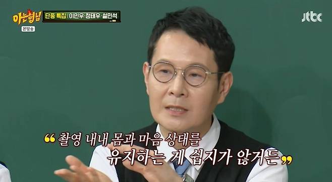 이민우는 "대단하다고 느낀 게 뭐냐면, 보통 3개월 이상 촬영하는데, 촬영 내내 몸과 마음 상태를 유지하는 게 쉽지 않다. 근데 그걸 인위적으로 준비하면서 했단 걸 듣고 대단한 친구라고 생각했다.