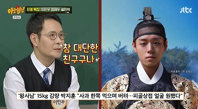 [TV리포트=남금주 기자] 이민우, 정태우가 영화 '왕과 사는 남자' 속 박지훈의 연기를 칭찬했다.