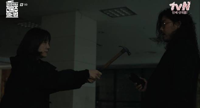 11일 tvN '대한민국에서 건물주 되는 법'에선 이경(정수정 분)의 지시 하에 자백 영상을 촬영하는 선(임수정 분)과 수종(하정우 분)의 모습이 그려졌다.
