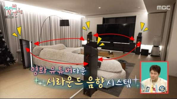 지무비의 '집 사랑'은 여기서 끝이 아니었다. 다른 방으로 들어가자 또 다른 99인치 TV와 사방에 스피커가 설치된 전용 홈시어터 룸이 등장해 출연진의 감탄을 자아냈다. 심지어 침실조차 TV와 모니터로 가득 차 있었고, 집안에 설치된 모니터만 총 8대에 달했다. 지무비는 작업실에서 몰두하다가도 반려견 '덤보'의 간식 요청에 한달음에 달려 나가는 다정함을 보이며 반전 매력을 선사했다.