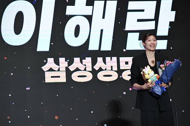 이해란은 "마지막 3경기를 못했다. 그래서 내가 너무 못해서 (상을) 못 잡지 않았을까 생각했다. 반성이 되더라"라고 얘기했다. 이어 "3경기만 잘했으면 바뀌지 않았을까 생각했다. 그래서 플레이오프에서 좋은 모습이 나왔다"고 말했다.