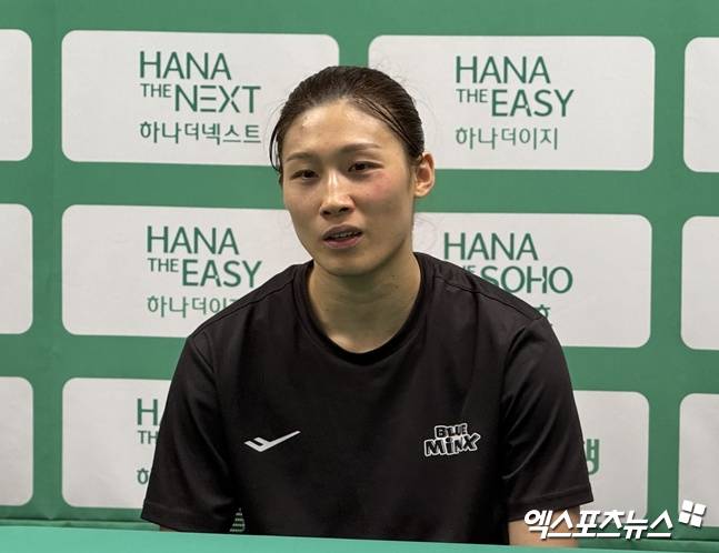 김아름(용인 삼성생명 블루밍스)은 최근 엑스포츠뉴스와 만나 후배 이해란에 대해 이야기했다.