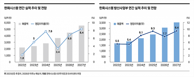 증권가에서는 올해 실적 개선 가능성도 높게 보고 있다. 키움증권은 한화시스템의 올해 매출을 4조4314억 원으로 전망했다. 전년 대비 20.9% 증가한 규모다. 영업이익은 3450억 원으로 179.3% 증가할 것으로 예상된다. 방산 부문에서는 중동 수출 확대와 레이더 양산 납품이 수익성 개선을 이끌 것으로 분석된다. 이동헌 신한투자증권 연구원은 “필리조선소는 지난해 적자가 지속됐지만 올해는 흑자 전환이 예상된다”며 “미국과 협력을 통해 차입을 통한 투자도 가능해 감가상각비 증가 부담은 크지 않을 것”이라고 전망했다.