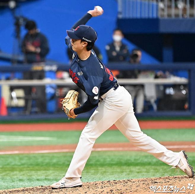 박정민은 올해 한일장신대를 졸업하고 신인드래프트 2라운드, 전체 14순위로 롯데 유니폼을 입었다. 장충고 3학년에 재학 중이었던 2021년 프로 지명에 실패한 뒤 대학에서 4년의 시간을 거쳐, 꿈에 그리던 KBO리그 무대를 밟을 수 있었다.