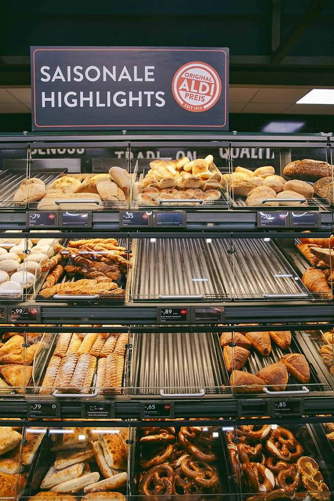 매장 내 상품의 70~80% 이상이 PB로 채워져 있다. 그중에서도 주목해야 할 것은 베이커리와 유제품, 그리고 과자류다. 매장 입구에 들어서면 고소한 빵 냄새가 풍기는 베이커리 코너가 있는데, 프레첼이나 크루아상을 1유로도 안 되는 아주 저렴한 가격에 살 수 있다.