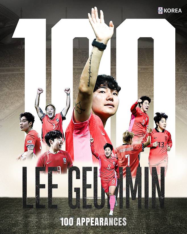 8개월만에 대표팀에 재발탁된 이금민은 이날 경기 출전으로 A매치 출전 기록을 100경기로 늘렸다.