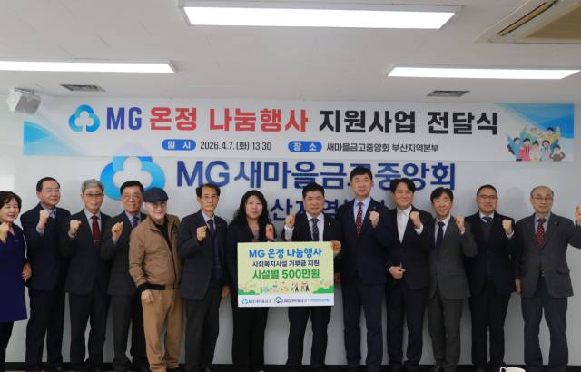 새마을금고중앙회 부산지역본부는 지난 7일 ‘MG 온정 나눔행사 지원사업’ 전달식을 개최하고, 부산 소재 사회복지시설 6곳에 각 500만 원, 총 3000만 원을 지원했다고 밝혔다. 이날 행사에는 새마을금고중앙회 박수용 이사, 김덕규 부산지역본부장, 부산 6개 새마을금고 이사장과 사회복지시설 대표 등 약 20명이 참석해 나눔의 의미를 더했다.