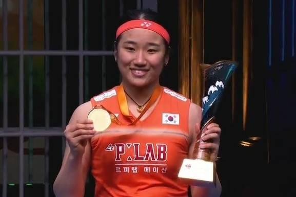 안세영이 그랜드슬램 달성 후 시상식에서 승자의 여유를 보였다.