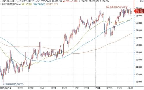 달러-엔은 159.266엔으로 전주대비 0.25% 하락(달러 대비 엔화 강세)했다. 2주 연속 밀렸다.