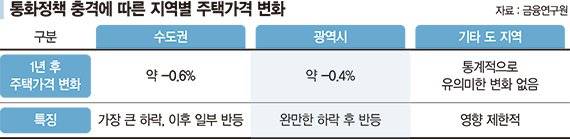 기준금리를 0.25%p 인상할 경우 수도권과 광역시 주택가격에는 영향을 미치지만, 그 외 지역 주택가격에는 별다른 영향이 없다는 연구 결과가 나왔다.