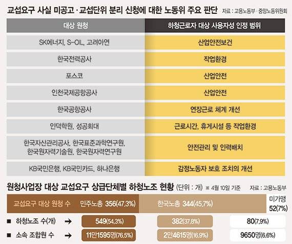 노동부에 따르면 개정법 시행(3월 10일) 이후 이달 10일까지 총 372개 원청을 대상으로 1011개 하청노조가 교섭을 요구했다.