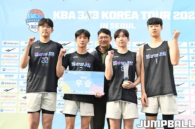 뉴진스는 12일 어린이대공원 열린마당 앞 특설코트에서 열린 'KBA 3x3 코리아투어 2026 서울대회' 중학부 결승에서 15-12로 김포SK를 따돌리고 우승을 차지했다.