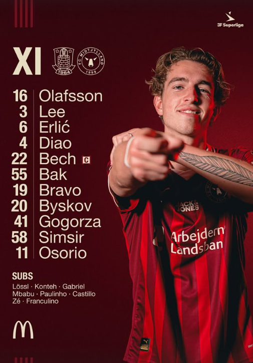 분위기 반전이 절실한 미트윌란이 총력전을 펼친다. 조규성이 경고 누적 징계로 결장하는 가운데, 이한범은 선발로 출전한다. 미트윌란은 오소리오, 심시르, 고고르사, 비스코프, 브라보, 바크, 베흐, 디아오, 에를리치, 이한번, 올라프손이 선발로 나선다.