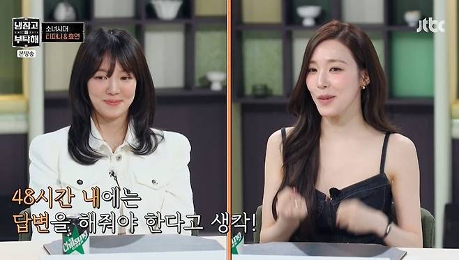 소녀시대 내 불통의 아이콘으로 통한다는 효연. 티파니는 "연락하면 48시간 내엔 답변을 해줘야 진행을 할 수 있다. 근데 연락을 잘 읽지 않는다"고 토로했고, 효연은 "글씨가 많으면 읽기가 싫다. 나름 포인트만 읽는데, 엇나갈 때가 많다"고 밝혔다.