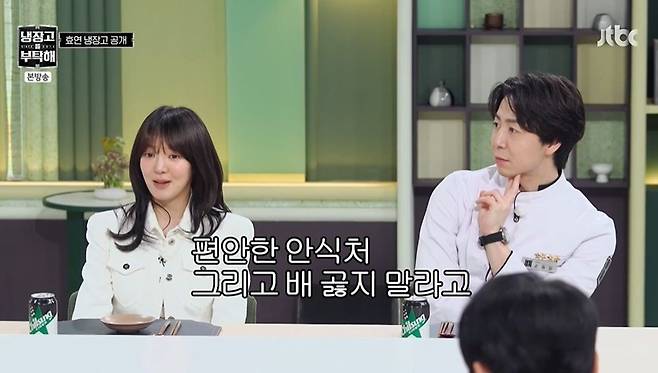 이날 '냉부해' 팬을 자처한 효연은 안정환 때문에 출연을 결심했다고 밝혔다. 안정환의 프로그램을 모두 챙겨본다는 효연은 "이상형이 말수 없고, 무게감 있고, 행동이 헤프지 않고"라고 했지만, 셰프들은 "어?"라며 처음 듣는 소리인 양 반응해 웃음을 안겼다.
