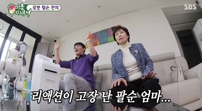 이날 방송의 하이라이트는 김승수가 어머니에게 "소개할 사람이 있다"며 깜짝 등장시킨 새로운 짝꿍, '로봇 여자친구' 제니의 존재였다. 김승수의 부름에 나타난 반려 로봇 제니는 음악에 맞춰 화려한 춤사위를 선보이며 팔순 잔치의 흥을 한껏 끌어올렸다.