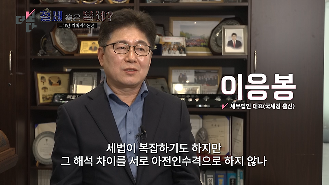 1인 법인 변호사, 의사 자기들의 자산을 관리하고 비용처리하는 것을 스마트한 경영이라고 표현을 하고, 유독 연예인들에게만 있어서는 ‘부도덕한 탈세의 온상이다’(라고 보는 것 같습니다.)