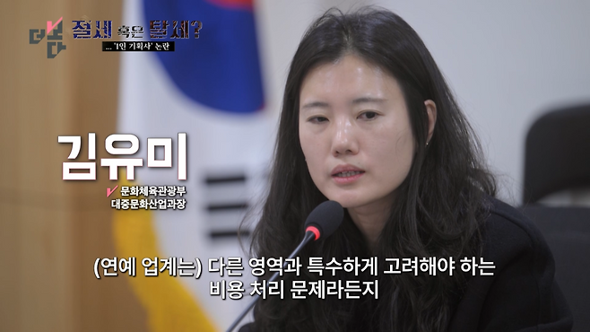 (연예 업계는) 다른 영역과 특수하게 고려해야 하는 비용 처리 문제라든지, 해당 수요들이 있는 것으로 판단하고 있습니다.