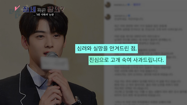 이와 관련해 차은우 씨는 자신의 SNS를 통해 '심려와 실망을 안겨드렸다'는 취지의 사과 메시지를 전했습니다.