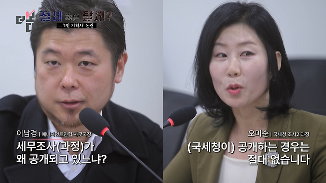 국세청이라 이런 쪽에서 대단히 관심이 많고 예의주시하고 있다는 소문은 익히 들어왔고 그런 관점에서 '지금 발생한 (1인 기획사) 문제들은 터질 것이 터지지 않았나' 그렇게 보고 있습니다.